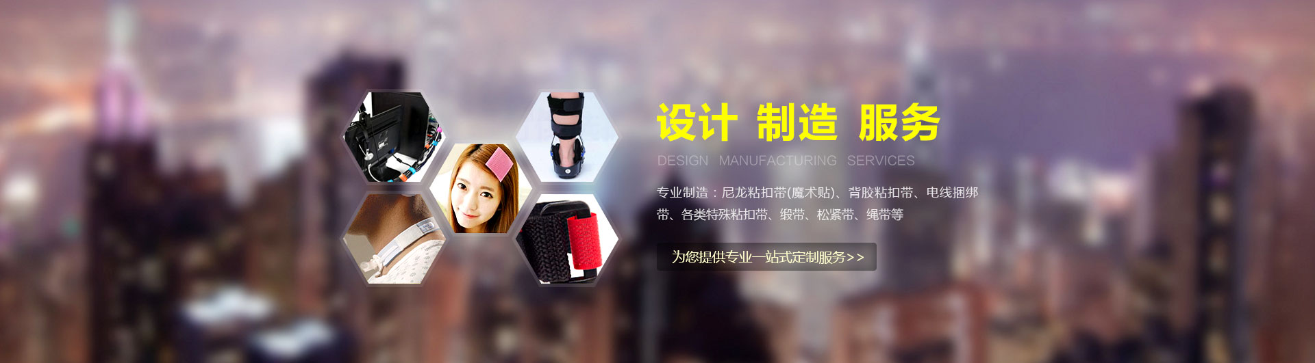司建立于1998年春,期间不断扩展业务,在2000年底于龙岗南联第六工业区设立研发生产基地织带厂,现拥有专业生产技术员工200余人,是全球较大的尼龙粘扣带(魔术贴)、背胶粘扣带、电线捆绑带、各类特殊粘扣带、缎带、松紧带、绳带等生产企业之一。---我们拥有半自动和全自动的生产流程,大部分生产机器设备来自于瑞士进口纺织机,主营粘扣带产品的全线生产流程。基本如下几个程序:首先是织机将原料尼龙纱经织带机造成胚带形状,在经高温染色设备将半成品的胚带染成各种颜色。粘扣带的绒面胚带是先染颜色,再经起毛机设备将颜色胚带绒面表面刷起卷毛后再经上浆定型,粘扣带的钩面是将染好的胚带钩面上浆,定型后再将胚带表面的的尼单丝经进口切钩机给予均匀适当的切断,单丝便形成带有钩黏性胚带,最后再经进口分条经卷设备给予分条成所需的各种规格宽度。再切断所需长度后并卷装箱。管理方面:由始至今我们不断引入先进的企业管理体系,不断提高员工技术素质和欧洲先进的纺织设备,保证了产品的质量。我们所用的原材料与生产基本技术采用了于业界有着先进技术和经验的台湾及日本等地。所有原材料与染料全部采用有国际(欧盟标准)认可,低毒(不含六种有毒素质)(不含Azo)标准,近年来我们提